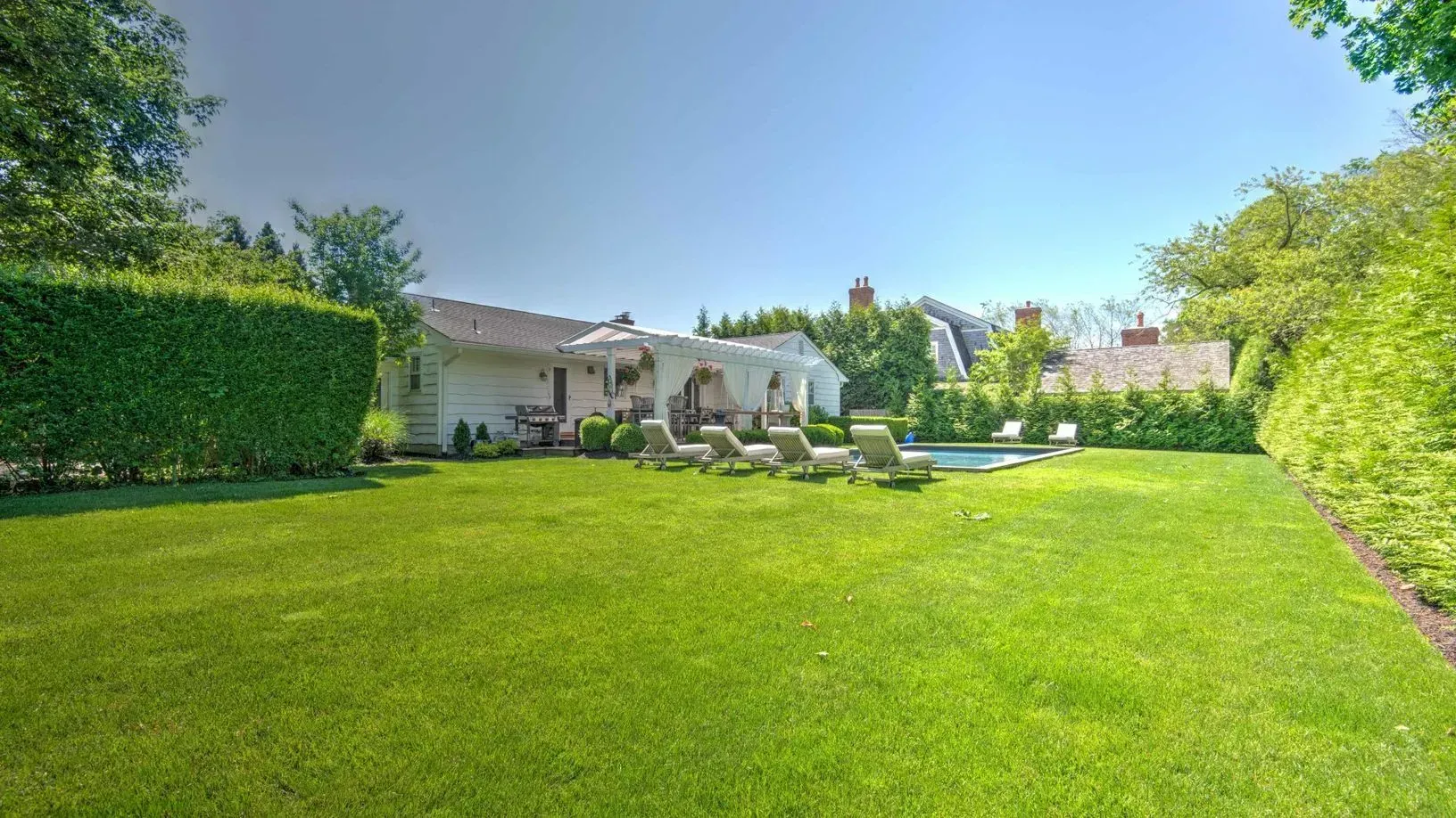 This recently renovated, four-bedroom, three-bathroom Cottage features a spacious living room, eat-in kitchen and an inviting terrace overlooking the heated pool. A wonderful retreat in the Estate Section close to Southampton Village and beaches. Please call us for a private showing.
